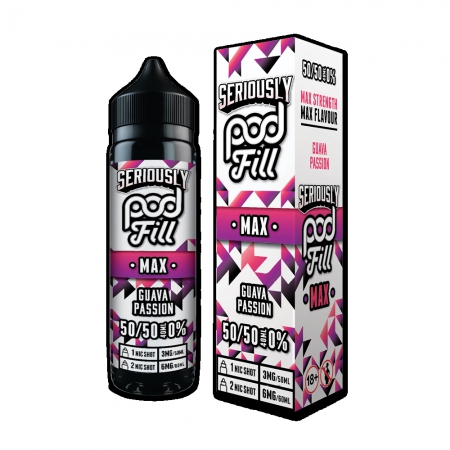 Seriously Pod Fill Max 40ml 50/50 E-liquid Shortfill is available as 40ml of e-liquid in a 60ml short-fill bottle, with space for either 1 x 10ml nicotine shot to be added to make 3mg or 2 x 10ml nicotine shot to be added to make 6mg.